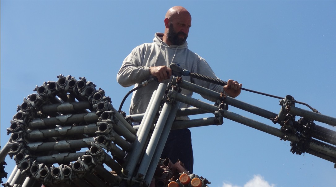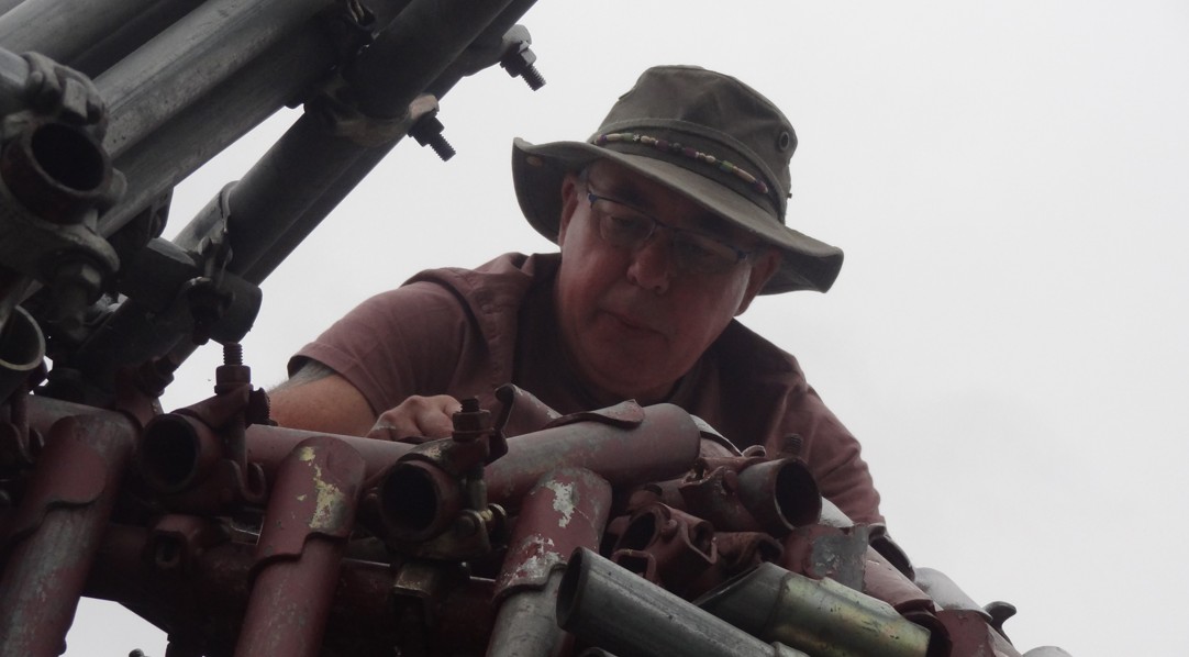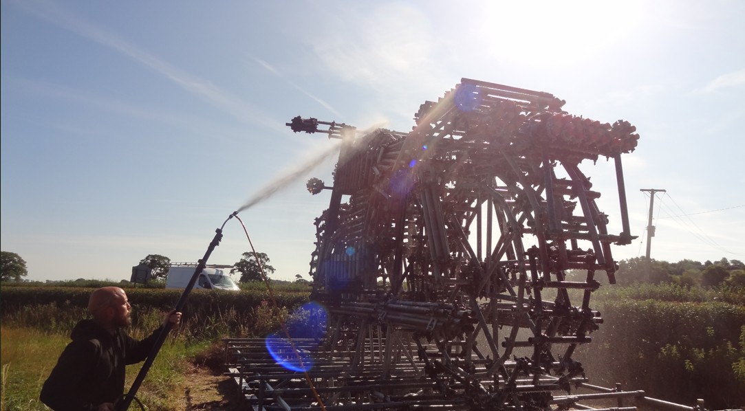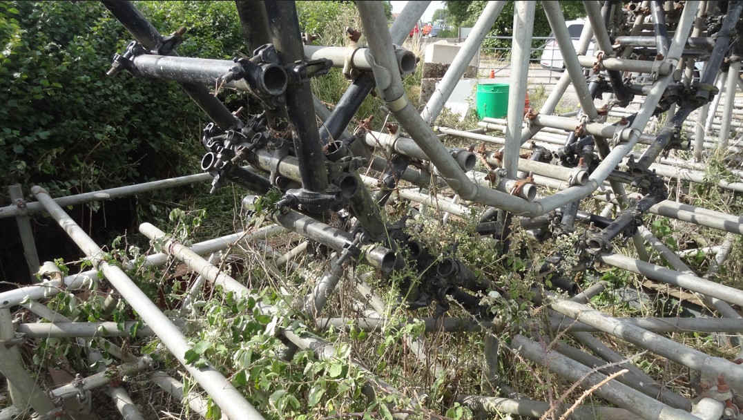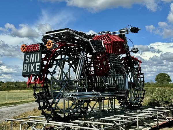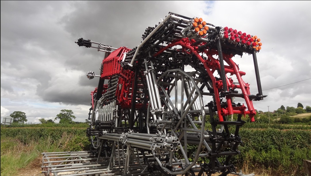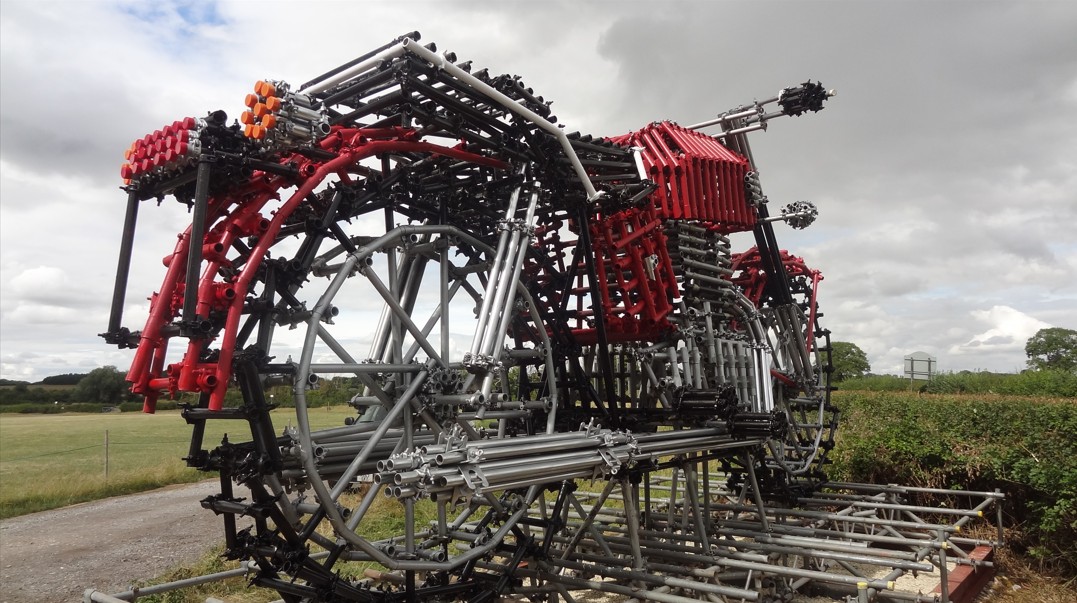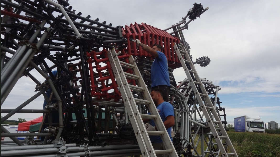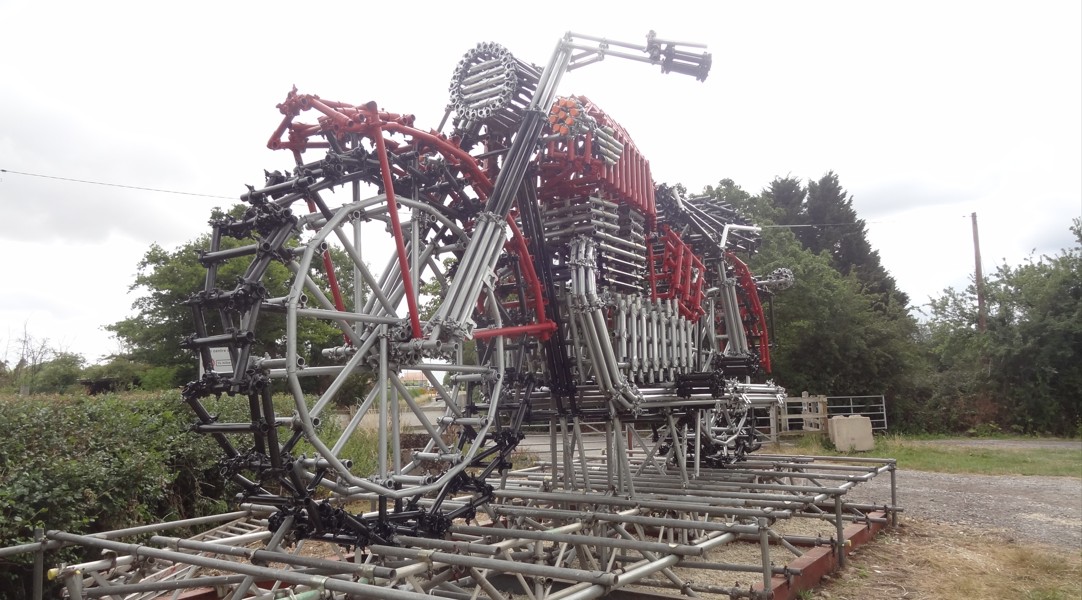 We’ve all ridden or driven past the “Scaffold Bike,” the large motorcycle sculpture made from scaffolding pipes, which is located at the entrance to Beversbrook Farm on the A3102 towards Hilmarton, just outside Calne. It was built by Toby Welsby (pictured below) back in 2013 and stands approximately 20 feet high. The sculpture was created to commemorate the Calne Bike Meet, our very own annual and free motorcycle event.