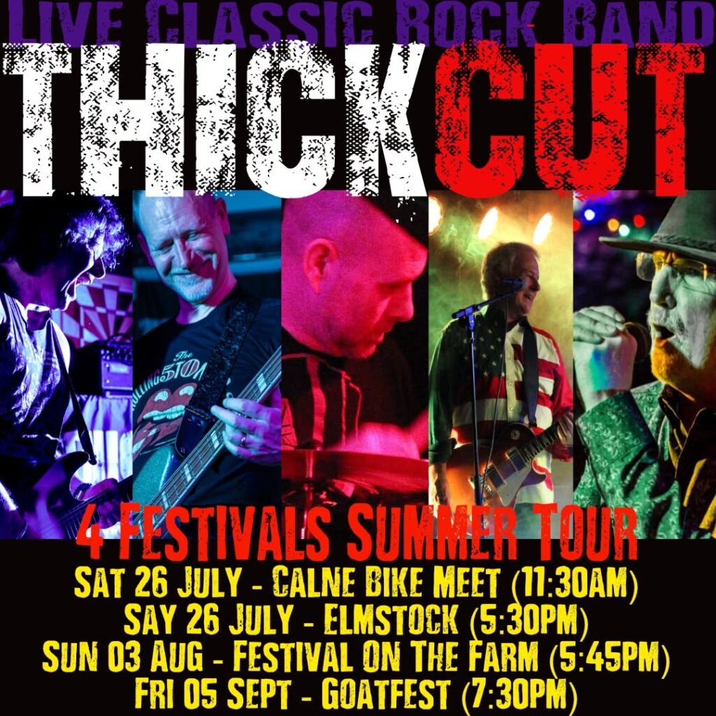 Forged from the self same molten rock that gave birth to such hard rocking titans as Zeppelin, Purple, Lizzy, Skynyrd, Whitesnake, Stones, Tom Petty and the Black Crowes – Thickcut bring their brand of all rocking, all dancing, all-sing-alonging classic twin guitar rock covers to Calne!