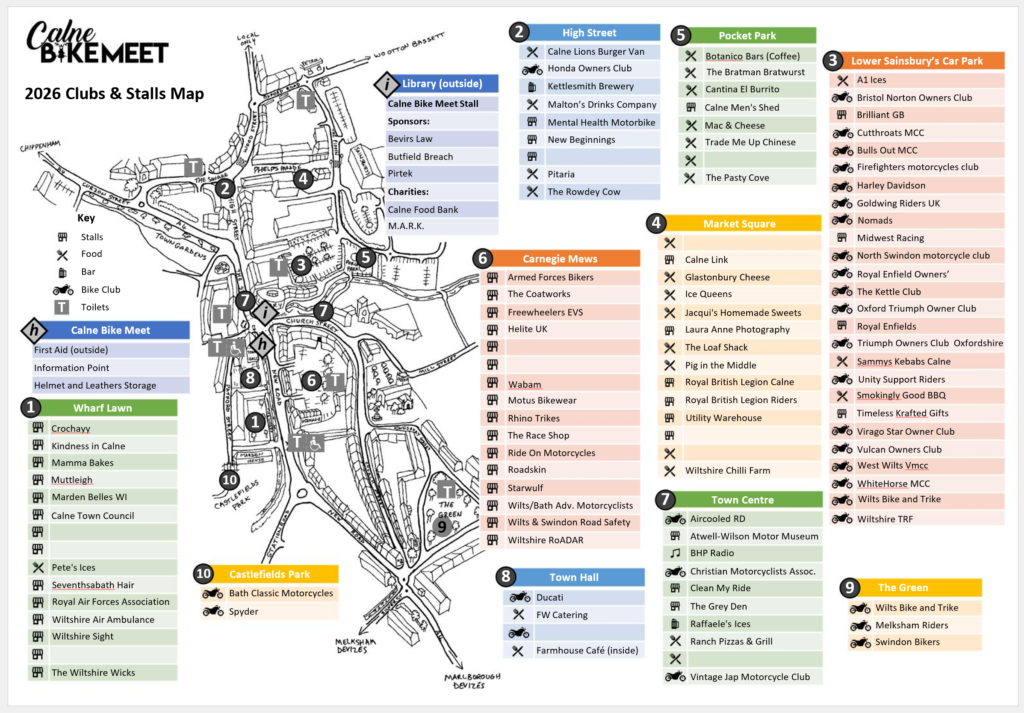 Pro Tip: Don’t forget to visit the Official Calne Bike Meet Stall outside the Library to grab your commemorative 2026 patch and event program!